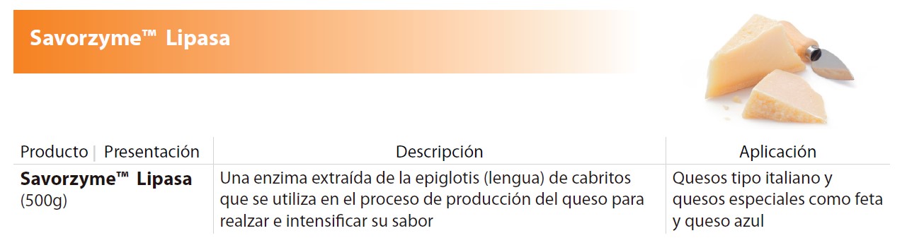 Las enzimas de lipasa contienen actividad lipolítica y esterasa que degradan las grasas de la leche en glicerol y ácidos grasos, lo que da como resultado el desarrollo de perfiles de sabor de queso únicos.