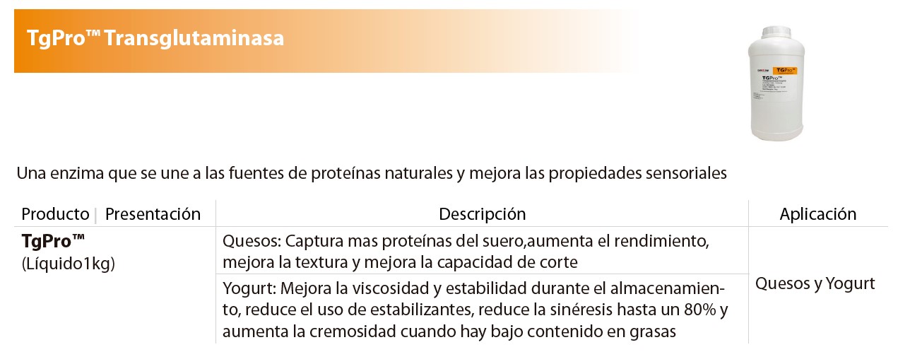 La enzima de transglutaminasa se une a las fuentes de proteínas naturales de los productos lácteos y mejora las propiedades sensoriales del queso y el yogurt mientras reduce la sinéresis.