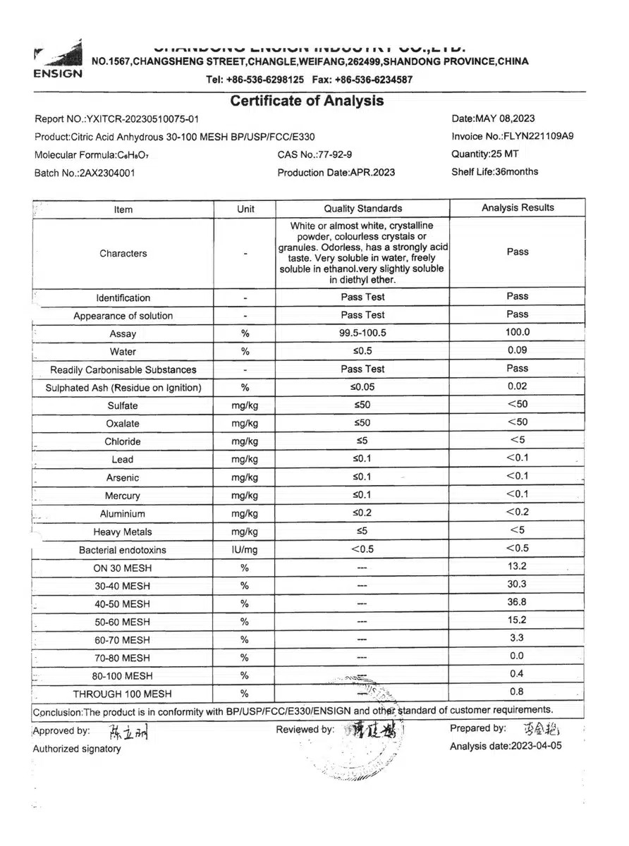 ACIDO CITRICO ENSING GRANULAR FINO