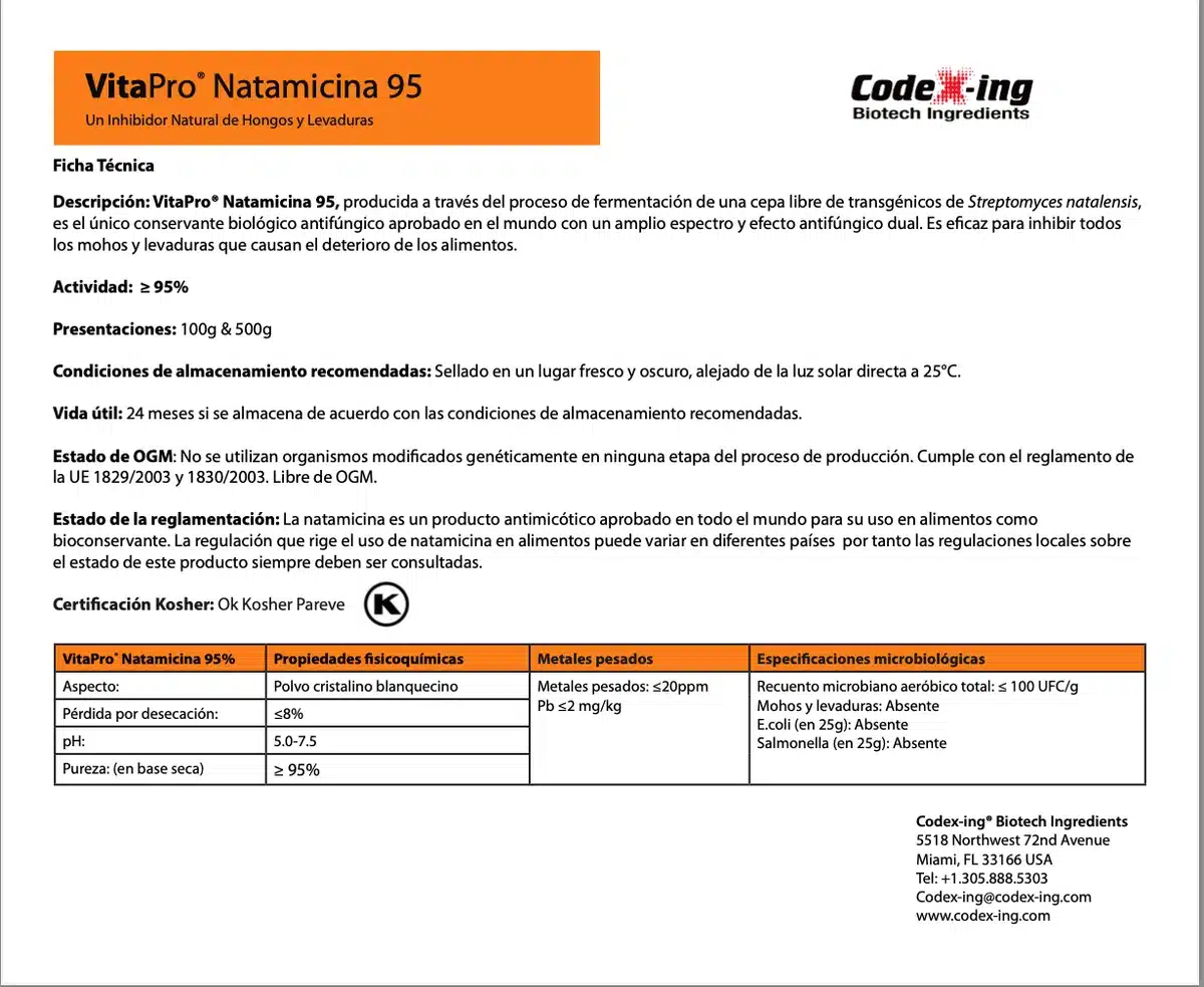 Composición: Contenido de natamicina: ≥ 95%